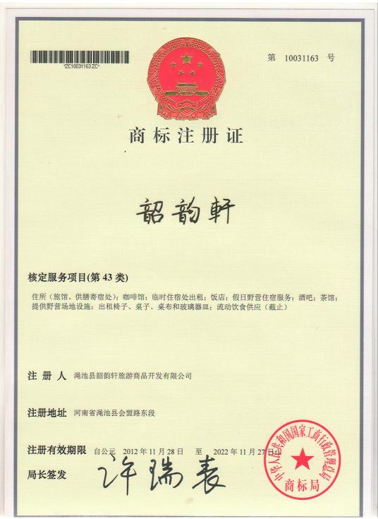 商標(biāo)注冊(cè)證--韶韻軒
