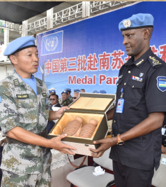 聯(lián)南蘇團維和部隊向國際友人贈彩陶助和諧